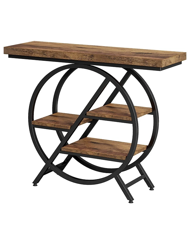Tribesigns 70.87" Console Table with Storage Shelf, Narrow Long Sofa Table Behind Couch Table, 2-Tier Rustic Entryway Table with Half Moon Frame for H