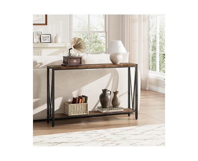 Tribesigns Extra Long Console Table,2-Tier Entryway Accent Table with Storage for Living Room,Wood Sofa Table Behind Couch Narrow Long, Rustic Brown