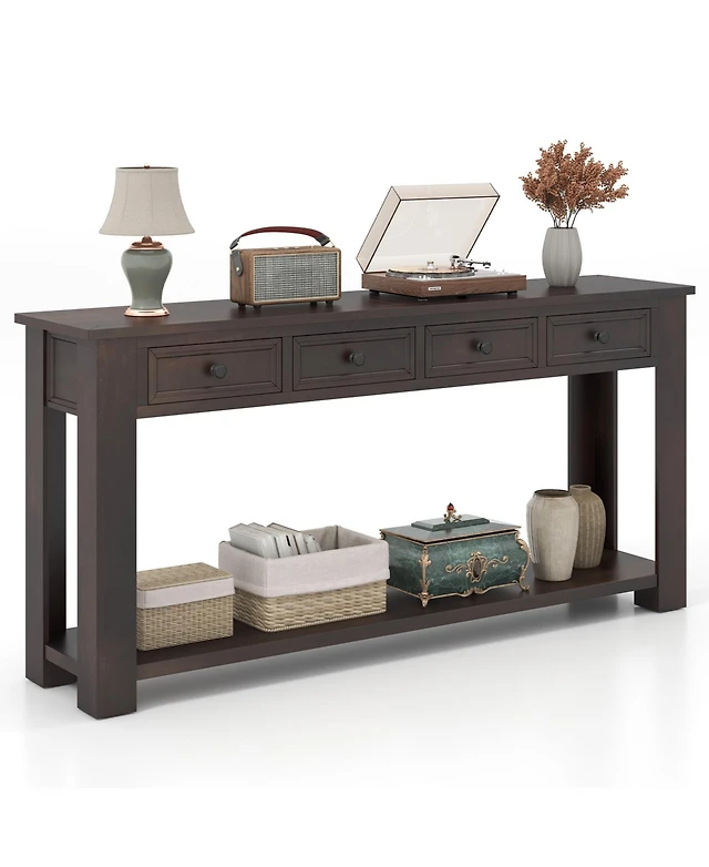 Console Table with Drawer and 2-Tier Shelves for Entryway Living Room