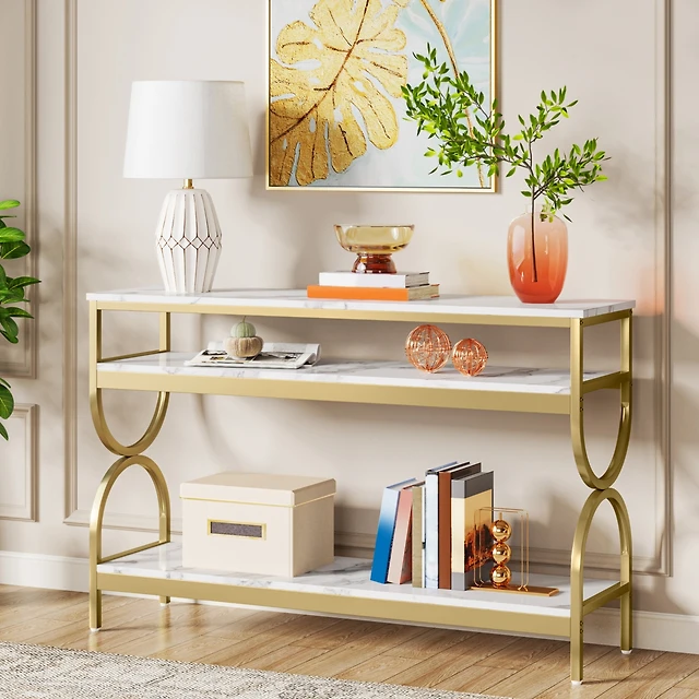 Tribesigns 41-Inch Gold Entryway Table, Modern Console Table Narrow Long, Contemporary Accent Table for Living Room, Hallway, Entrance, Faux Marble Ve