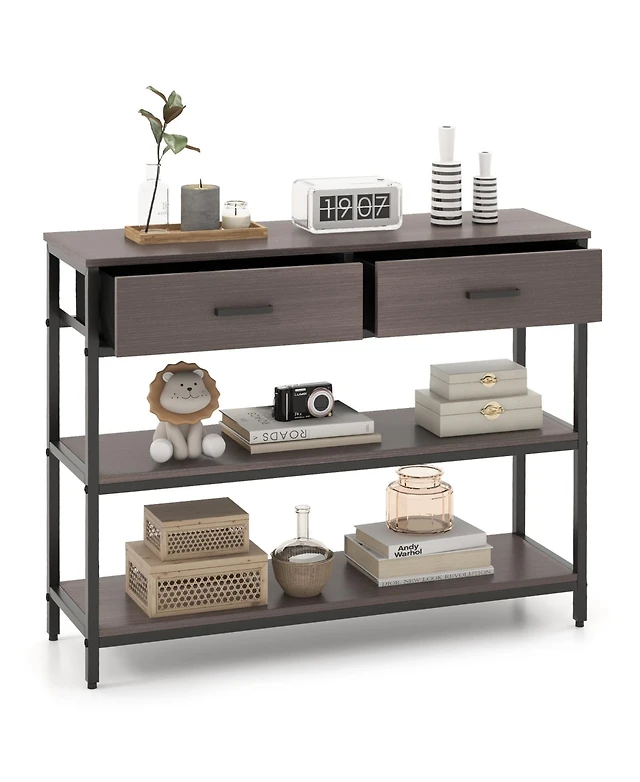 Gouun Console Table with Drawer and 2-Tier Shelves for Entryway Living Room