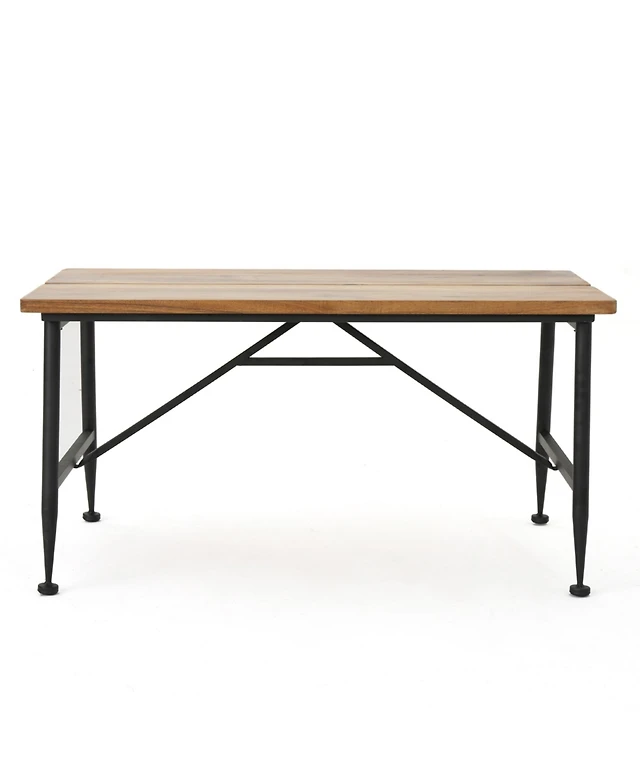 Acacia Wood Dining Table for 6 People 55" Rectangle Patio Table with Umbrella Hole