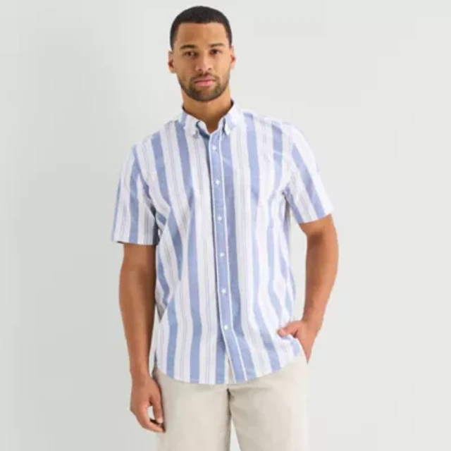St. John's Bay Everyday Stretch Mens Short Sleeve Classic Fit Big and Tall Button-Down Shirt