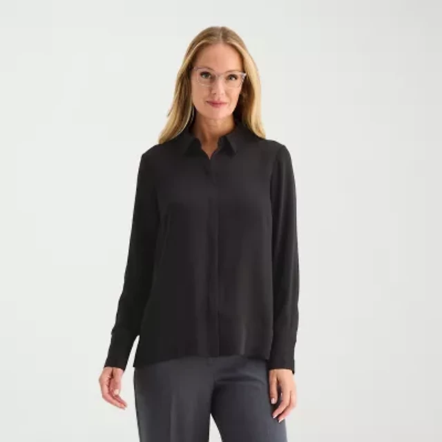 Gloria Vanderbilt Womens Long Sleeve Regular Fit Button-Down Shirt