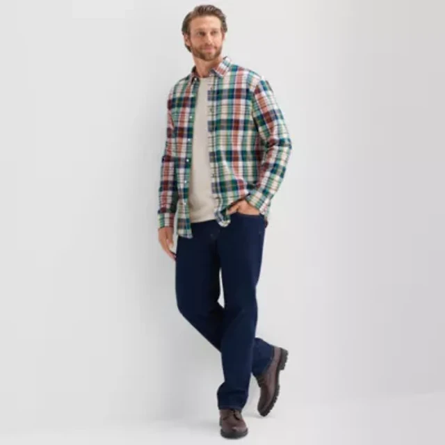 Stafford Coolmax All Season Oxford Mens Regular Fit Stretch Fabric Wrinkle Free Long Sleeve Dress Shirt