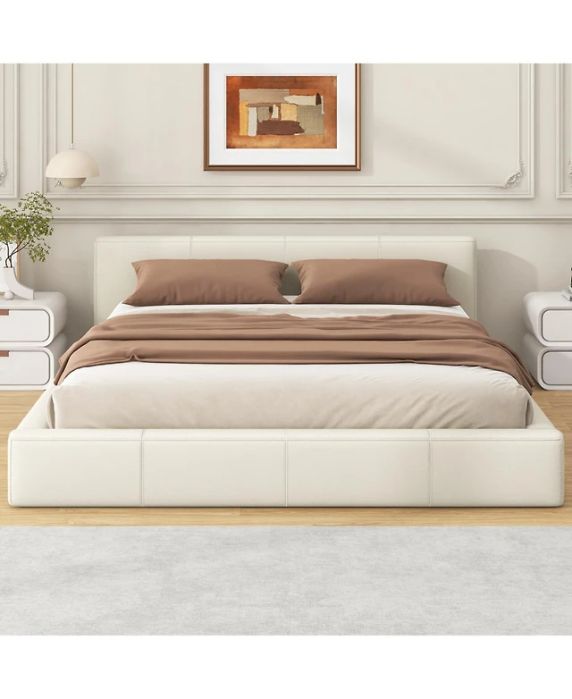 Simplie Fun Faux Leather Upholstered Platform Bed Frame with led Lighting, Bluetooth connection to play music control, Backrest vibration massage, Cur