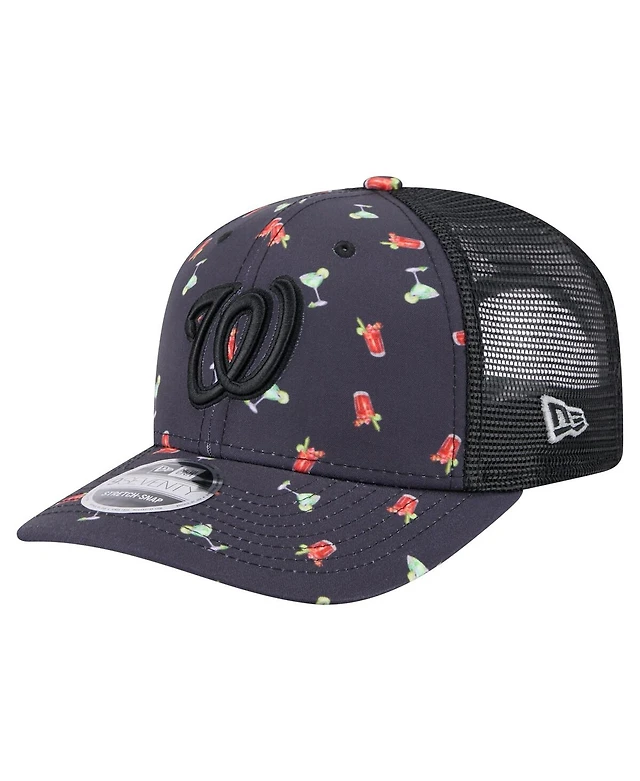 New Era Men's Black Washington Nationals Adventure Drinks Pattern 9SEVENTY Stretch-Snap Hat