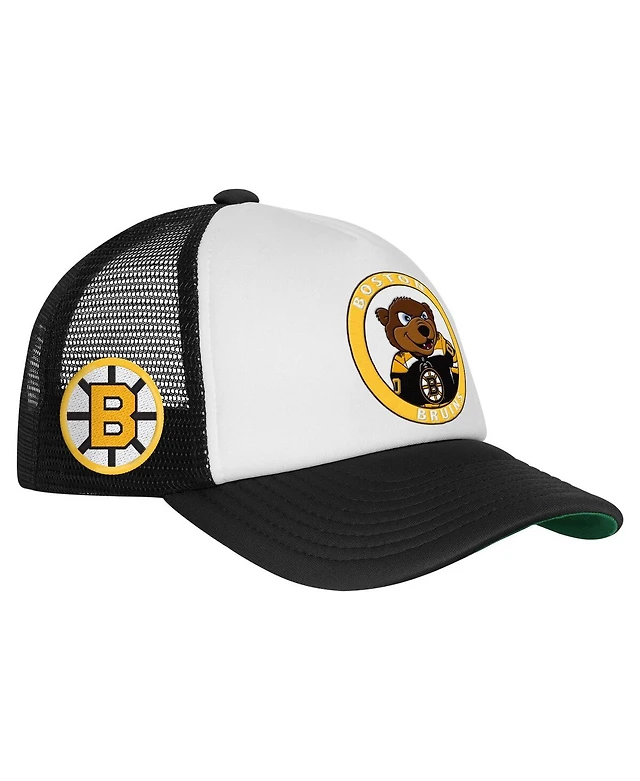 Mitchell & Ness Big Boys and Girls White Boston Bruins Mascot Adjustable Trucker Hat