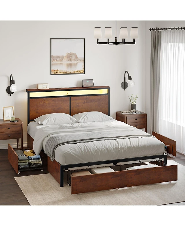 Gouun Upholstered Led Bed Frame with Headboard and 4 Drawers-Full Size