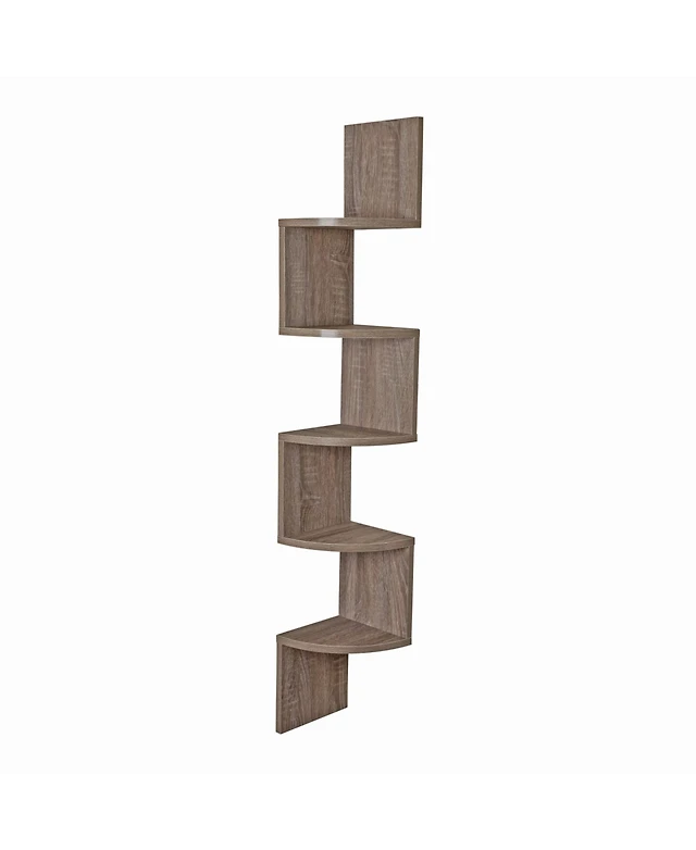 Sorbus 5 Tier Zig Zag Floating Corner Wall Bookshelf Unit 40 Tall For Living Room Bedroom Office More Space Saving Storage Solution