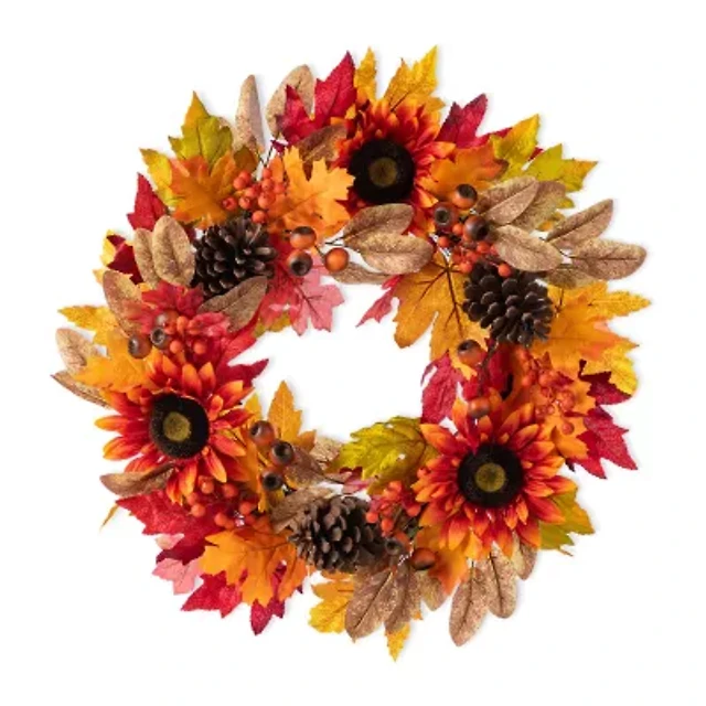 Glitzhome 24"D Fall Sunflower, Pinecone And Berry Wreath Thanksgiving Tabletop Decor