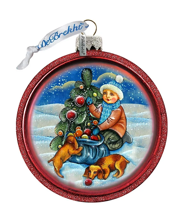G.DeBrekht Trim A Tree Boy with Dogs C Ball Glass Ornament