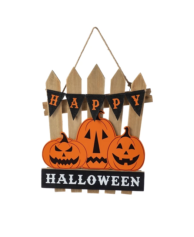 Glitzhome 14" Halloween Wood Jack-o'-Lantern Door Hanger
