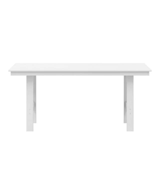 LeisureMod Kent Outdoor White Table With 2 Grey Chairs Dining Set