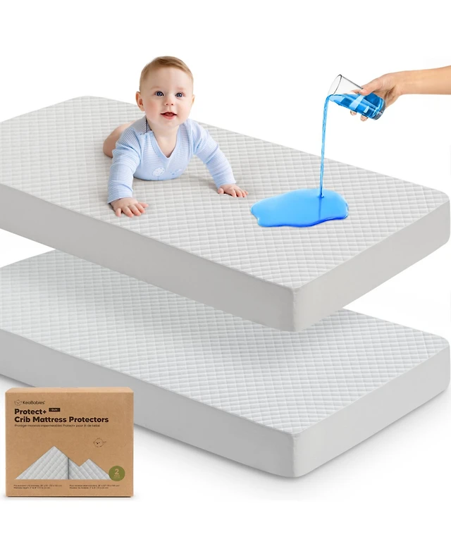 KeaBabies 2-Pack Protect+ Waterproof Crib Mattress Protector Covers, Mavy Quilted Cotton Baby Topper, Toddler Sheets