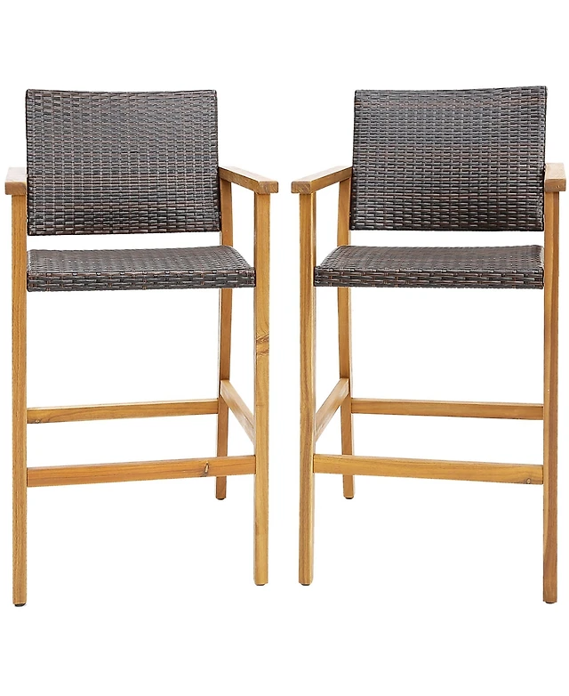 Costway 2pcs Pe Wicker Patio Bistro Chairs Acacia Wood Armrests