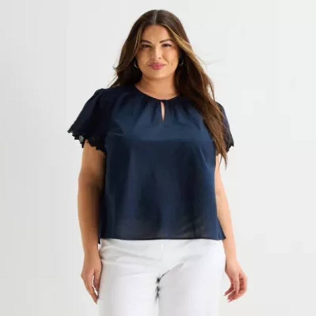 Liz Claiborne Womens Plus Round Neck Short Sleeve Blouse