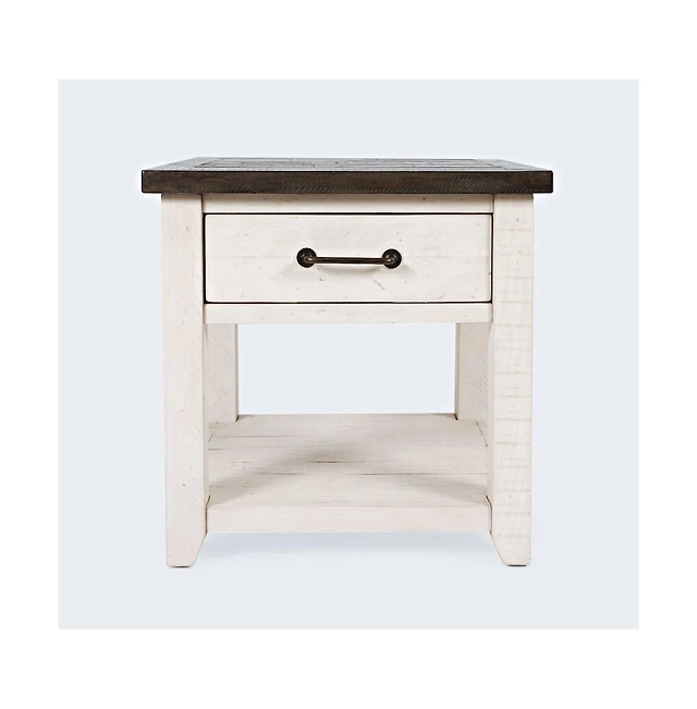 Jofran Westport Modern Farmhouse Chairside End Table with Storage Shelf