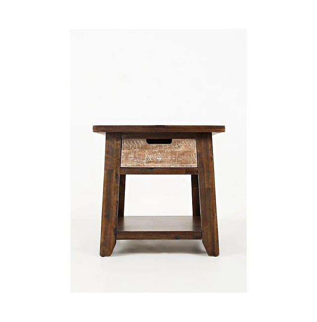 Conundrum Modern Distressed Solid Acacia End Table