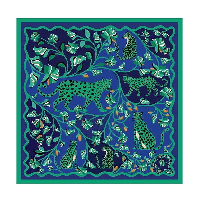 Jessie Zhao New York Double Sided Silk Scarf Jungle Party