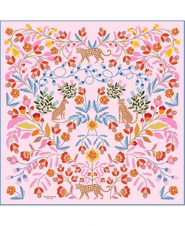 Jessie Zhao New York Double Sided Silk Scarf Of Pink Blossom Jungle