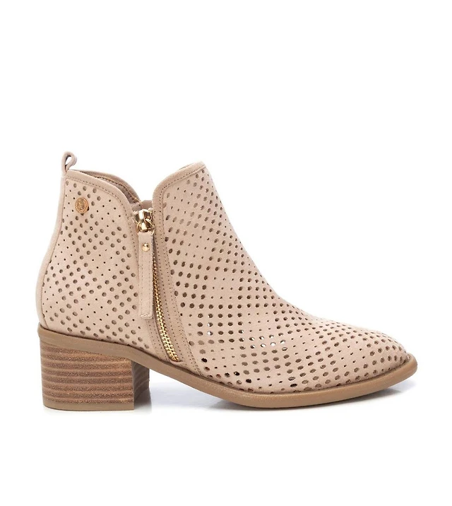 L'Artiste Women's Ladyluck Western Suede Booties with Floral Overlay and Block Heel