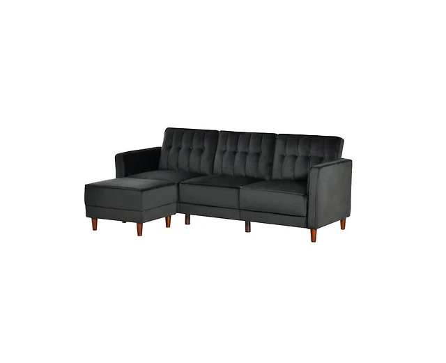 Maison Boucle 77.25" L-Shaped Corduroy Pull Out Sofa Bed with Chaise Storage, Tufted Modular Sleeper Couch Loveseat Adjustable Back