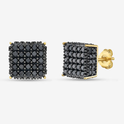 1 3/4 CT. T.W. Natural Black Diamond 14K Gold Over Silver Sterling Silver 8mm Square Stud Earrings
