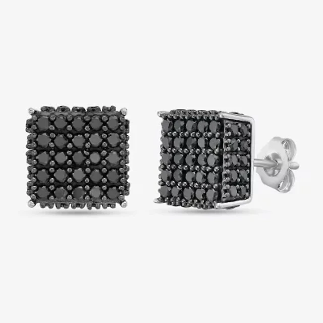 1 3/4 CT. T.W. Natural Black Diamond Sterling Silver 8mm Square Stud Earrings