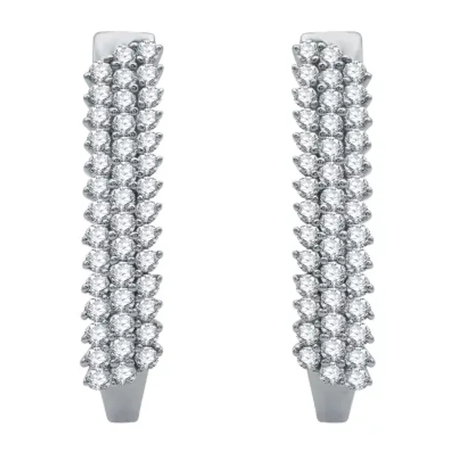 (H-I / I1) Womens 1 CT. T.W. Lab Grown White Diamond 10K White Gold 21.9mm Hoop Earrings