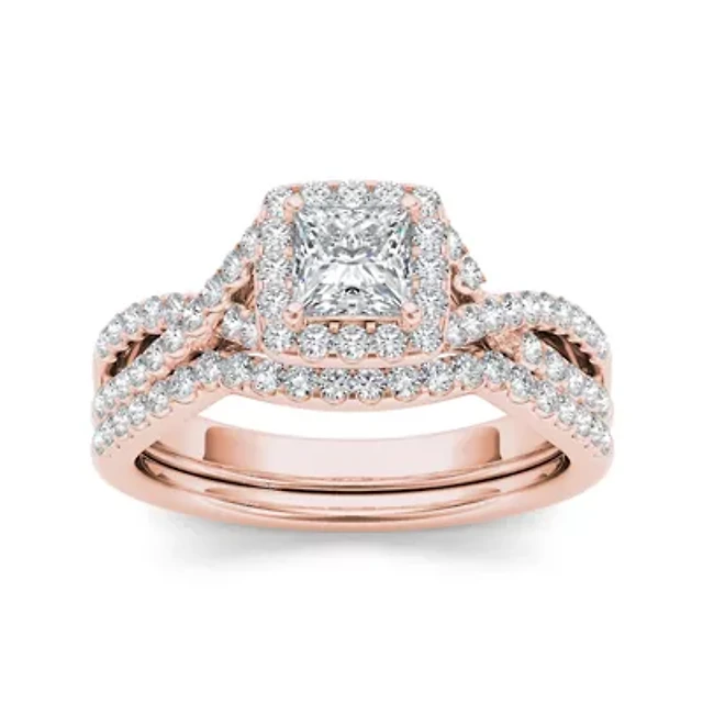 2 CT.T.W. Natural Diamond 14K Rose Gold Bridal Ring Set