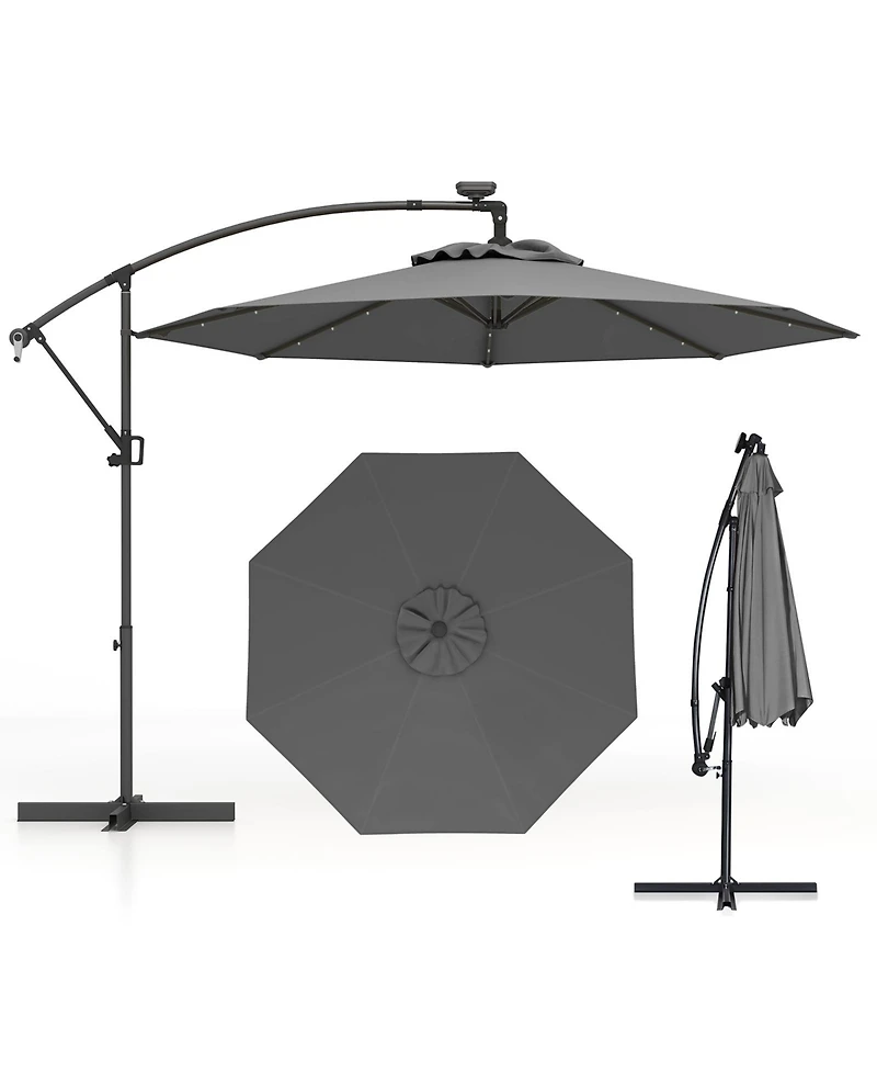 10 Feet 360° Rotation Solar Powered Led Patio Offset Umbrella without Weight Base