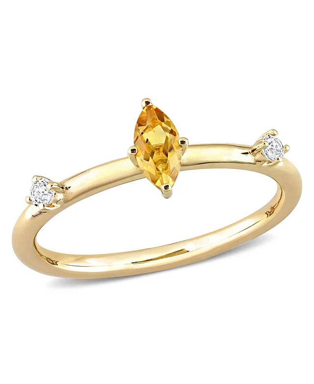 10K Yellow Gold Marquise-Cut Citrine and White Topaz Stackable Ring