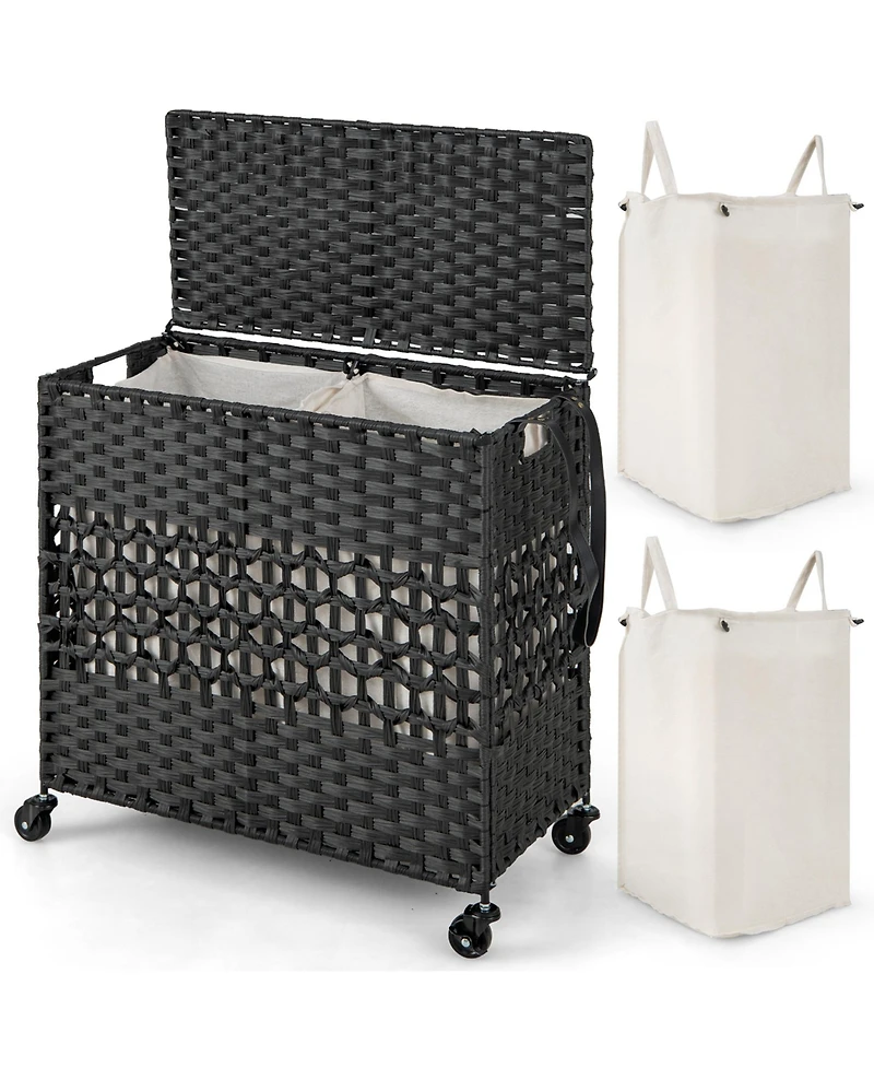 110L Laundry Hamper w/Wheels Clothes Basket w/Lid and Handle 2 Liner Bags110L Laundry Hamper w/Wheels Clothes Basket w/Lid and Handle 2 Liner Bags