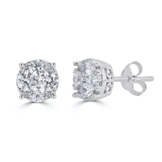 1 CT. T.W. Natural White Diamond 10K White Gold 6.8mm Round Stud Earrings