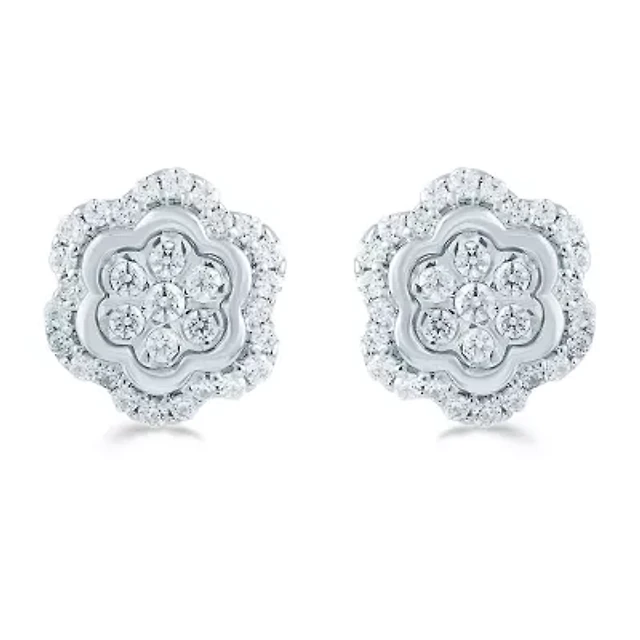 1/2 CT. T.W. Natural White Diamond Sterling Silver 10.2mm Flower Stud Earrings
