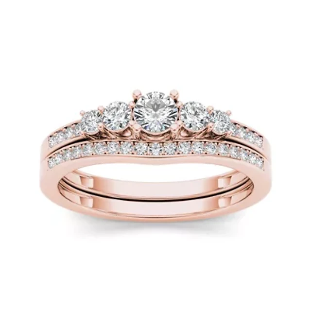 1 CT.T.W. Natural Diamond 10K Rose Gold Bridal Ring Set
