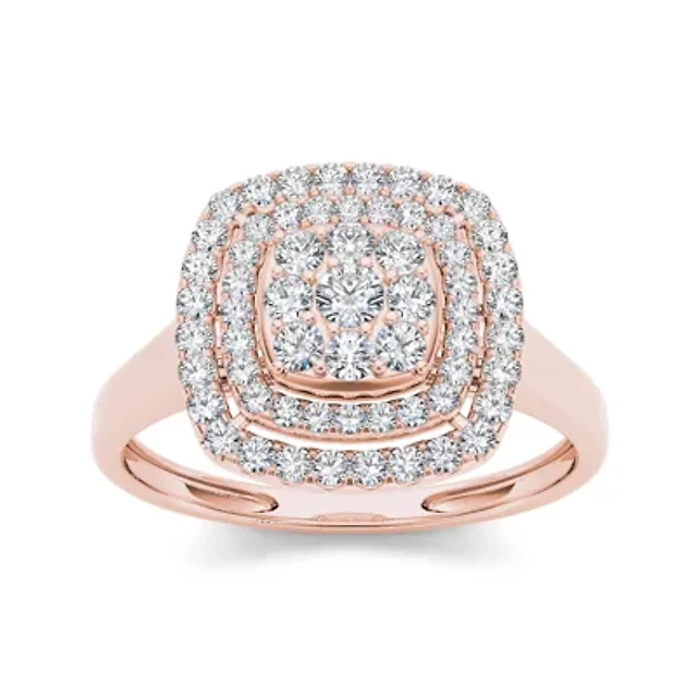 Womens 1 CT. T.W. Natural White Diamond 10K Rose Gold Cushion Halo Engagement Ring