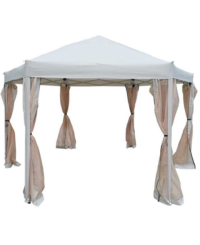 Outsunny 13' x 13' Pop Up Hexagonal Canopy Tent w/ Mesh Sidewalls