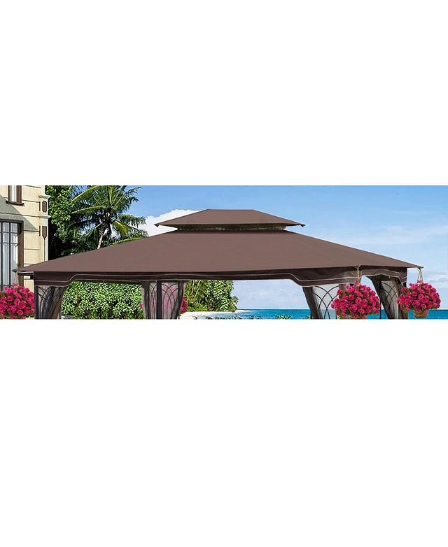 13x10 Ft Patio Double Roof Gazebo Replacement Canopy Top Fabric, Brown