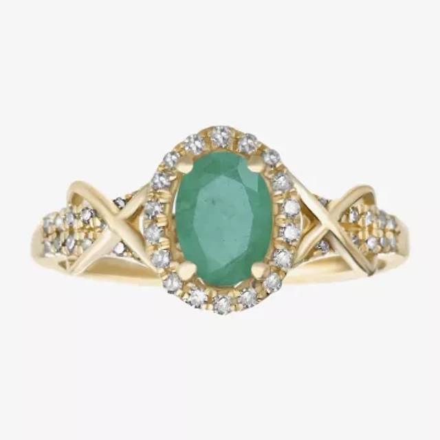 Womens 1/10 CT. T.W. Diamond & Genuine Green Emerald 10K Gold Oval Cocktail Ring