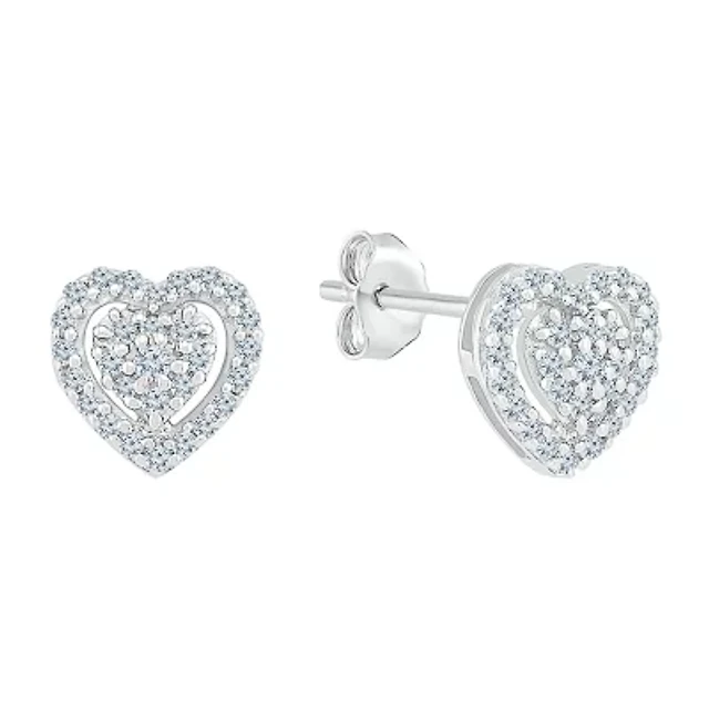1/4 CT. T.W. Natural White Diamond Sterling Silver 8.4mm Heart Stud Earrings