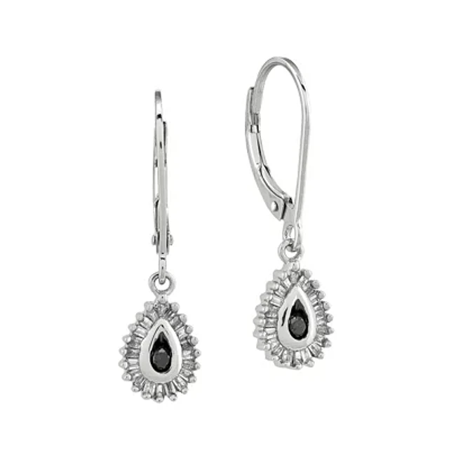 1/4 CT.T.W. Natural White and Color-Enhanced Black Diamond Sterling SIlver Teardrop Earrings