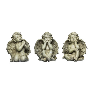 Set of 3 Gray Sitting Cherub Angel Outdoor Garden Statues 11"