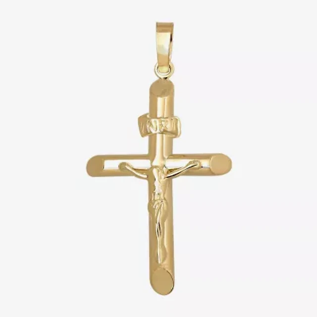 Mens 14K Gold Over Silver Cross Rectangular 22 Inch Pendant Necklace