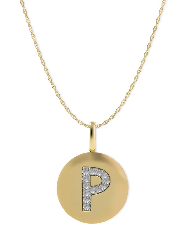 14k Gold Necklace, Diamond Accent Letter P Disk Pendant