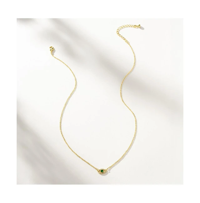 14k Gold-Plated Evil Eye Pave Necklace, 16" + 2" extender