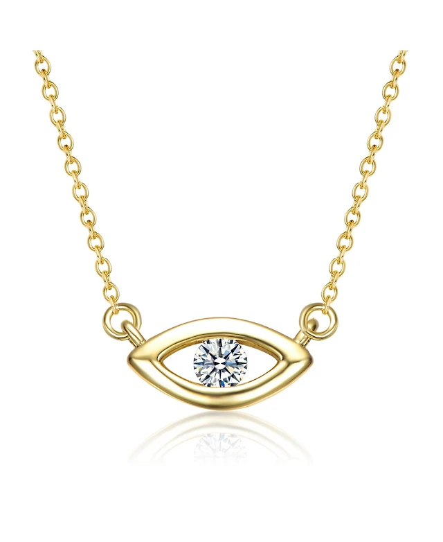14K Gold Plated with Clear Cubic Zirconia Evil Eye Pendant Necklace