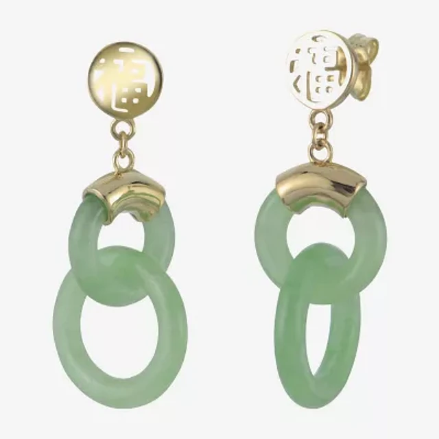 Womens Genuine Green Jade 18K Gold Over Silver Drop Earrings