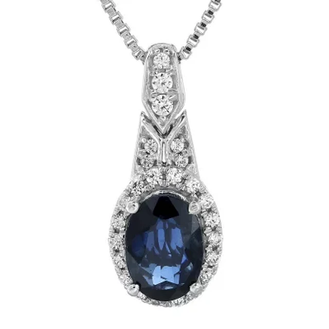 1/6 CT. T.W. Diamond and Genuine Blue Sapphire Sterling Silver Oval Drop Pendant Necklace